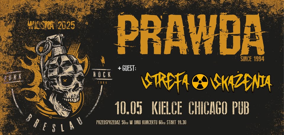 10 maja Kielce ponownie staną się punkowym bastionem – wszystko za sprawą koncertu legendarnej Prawdy oraz energetycznego składu Strefa Skażenia.