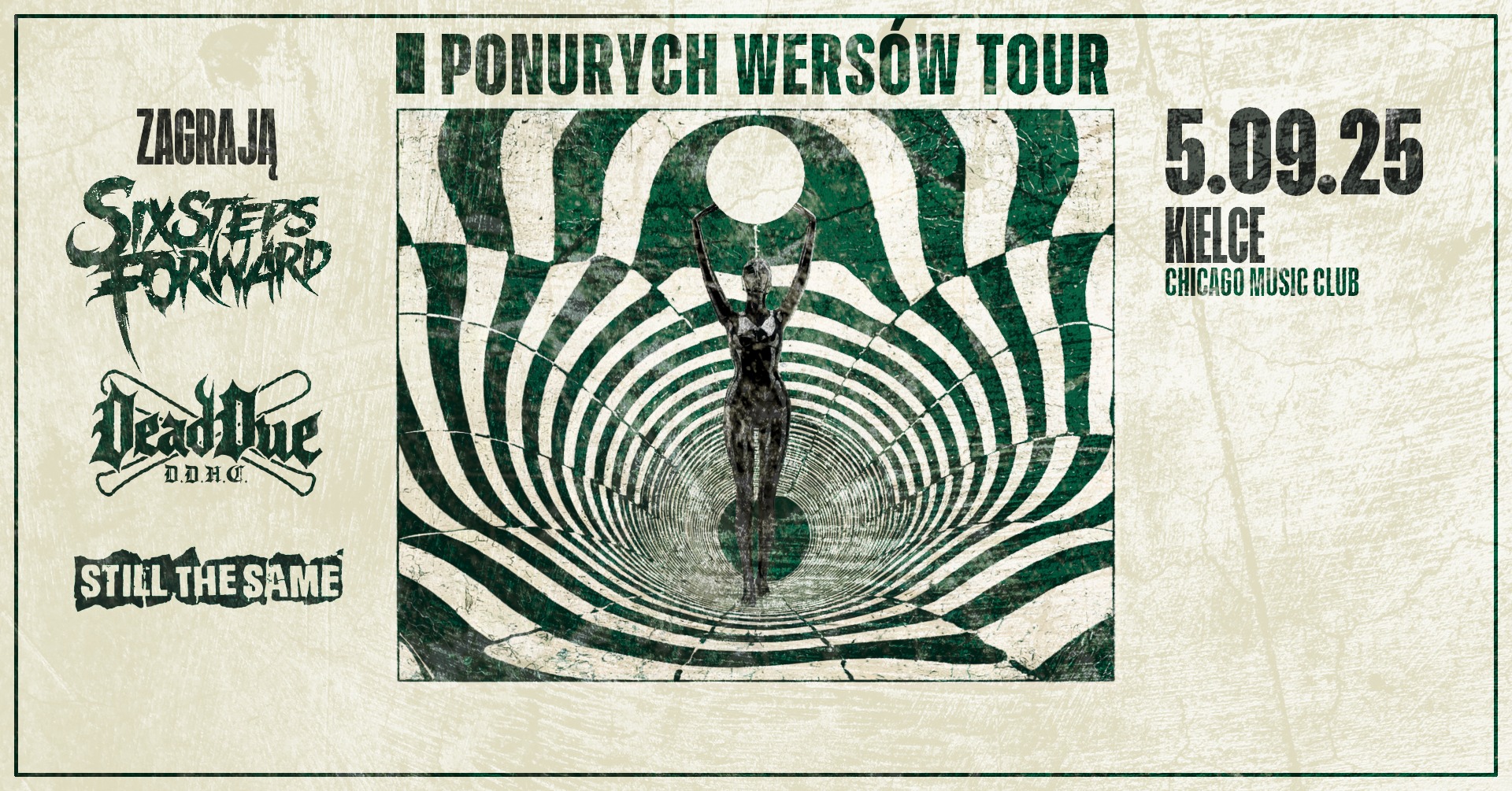 Z okazji premiery albumu „The Grim Verse”, zespół Six Steps Forward zaprasza na kielecki przystanek swojej trasy Ponurych Wersów Tour 2025. Wraz z nimi zagrają DeadDue oraz Still The Same – szykuje się potężna dawka hardcore’owej energii, która poruszy mury Klubu Chicago.